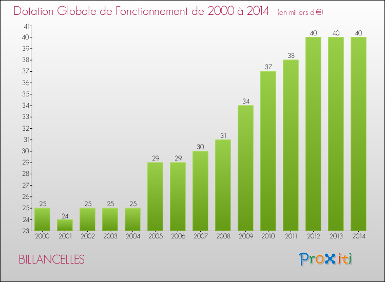 En effet, la dotation globale de fonctionnement versée par l'état en 2014 à la seule commune de Billancelles était de : 40 000 € au total.