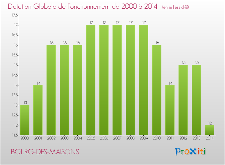 En effet, la dotation globale de fonctionnement versée par l'état en 2014 à la seule commune de Bourg-des-Maisons était de : 12 000 € au total.
