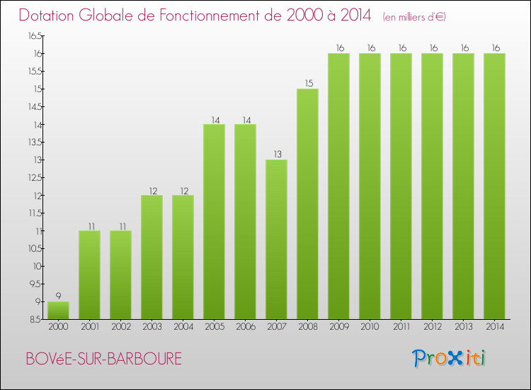 En effet, la dotation globale de fonctionnement versée par l'état en 2014 à la seule commune de Bovée-sur-Barboure était de : 16 000 € au total.