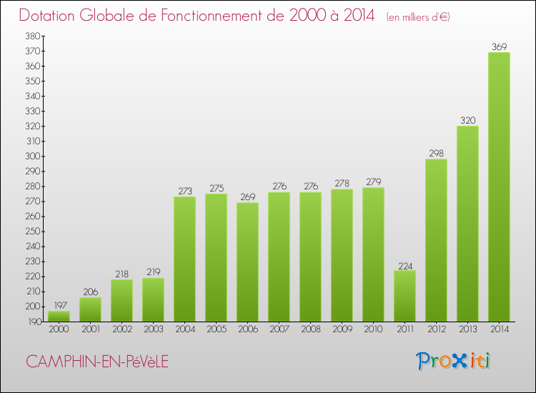 En effet, la dotation globale de fonctionnement versée par l'état en 2014 à la seule commune de Camphin-en-Pévèle était de : 369 000 € au total.