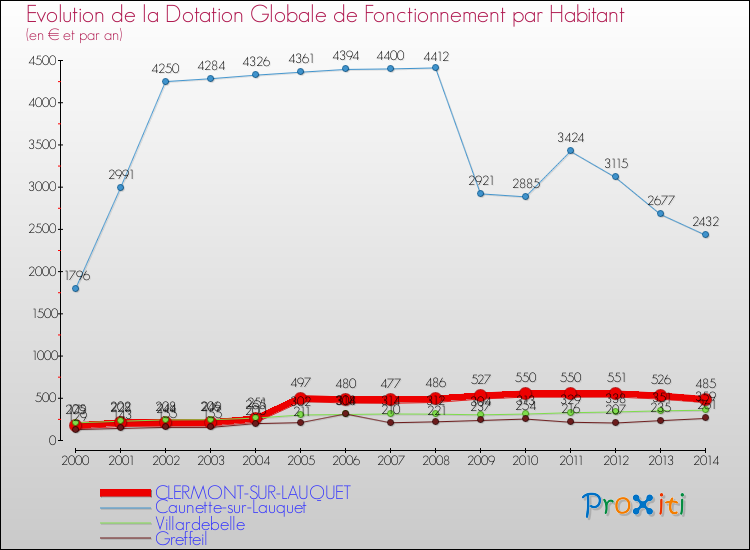 A Clermont-sur-Lauquet, en 2014 un habitant reçoit donc plus de subventions au titre de la DGF que pour des communes similaires.