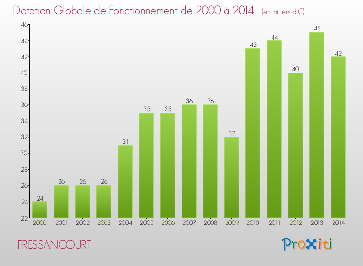 En effet, la dotation globale de fonctionnement versée par l'état en 2014 à la seule commune de Fressancourt était de : 42 000 € au total.