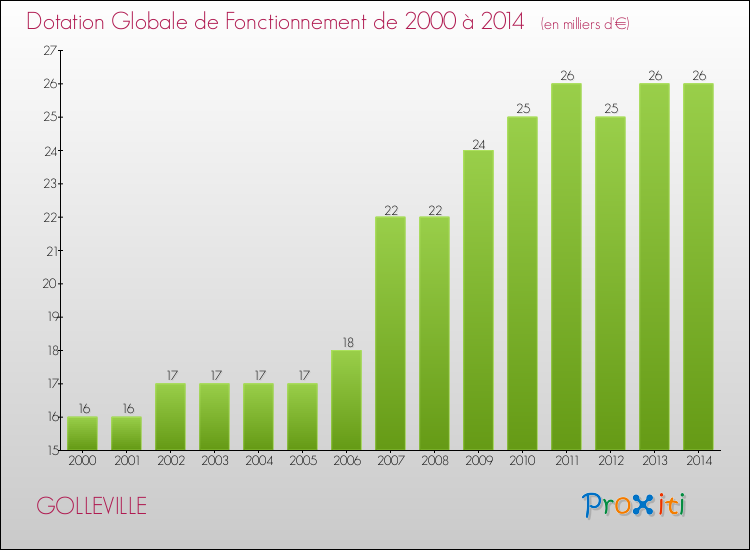 En effet, la dotation globale de fonctionnement versée par l'état en 2014 à la seule commune de Golleville était de : 26 000 € au total.