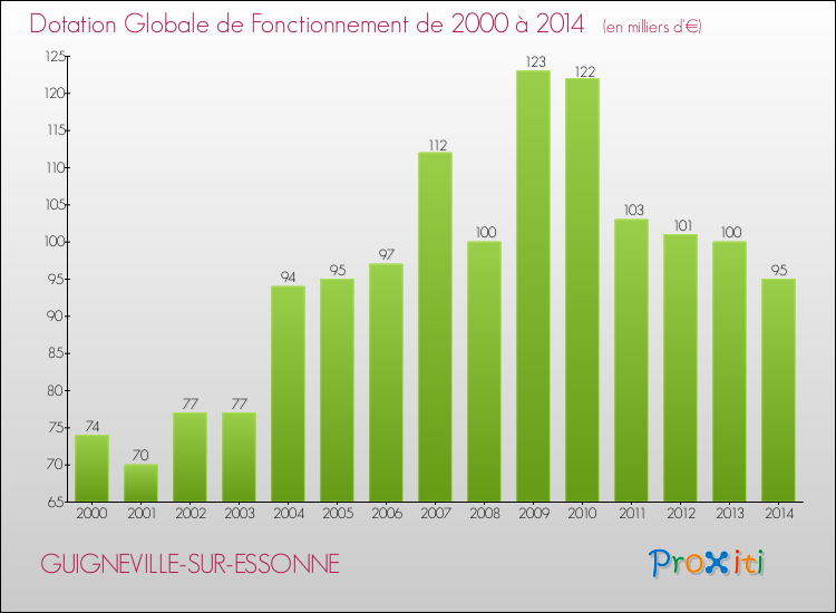 En effet, la dotation globale de fonctionnement versée par l'état en 2014 à la seule commune de Guigneville-sur-Essonne était de : 95 000 € au total.