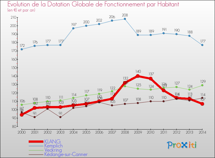 A Klang, en 2014 un habitant reçoit donc moins de subventions au titre de la DGF que pour des communes similaires.