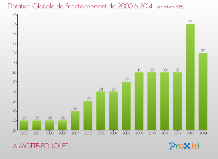 En effet, la dotation globale de fonctionnement versée par l'état en 2014 à la seule commune de La Motte-Fouquet était de : 32 000 € au total.