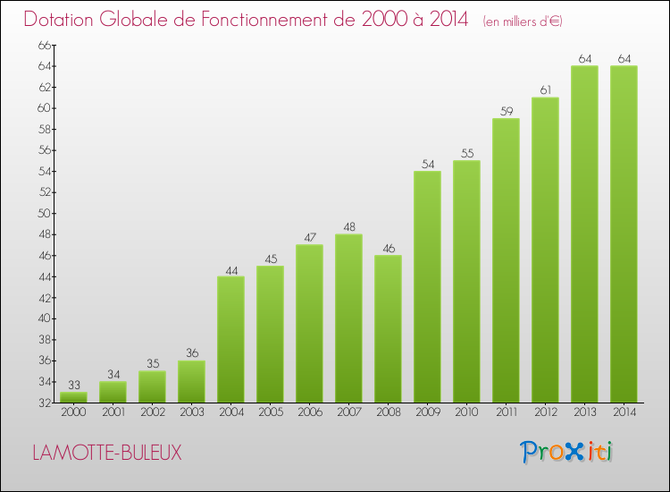 Dans le même temps, la Dotation Globale de Fonctionnement accordée aux communes françaises similaires à Lamotte-Buleux était de 199 € par habitant, en 2014.
