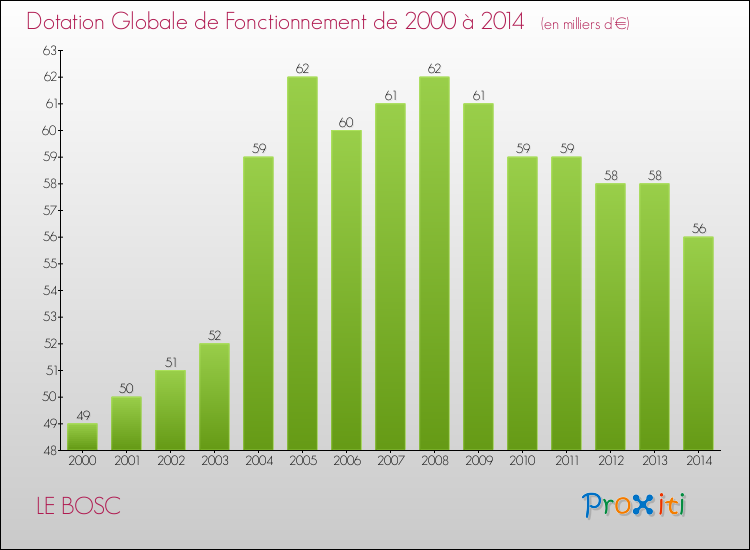 En effet, la dotation globale de fonctionnement versée par l'état en 2014 à la seule commune de Le Bosc était de : 56 000 € au total.