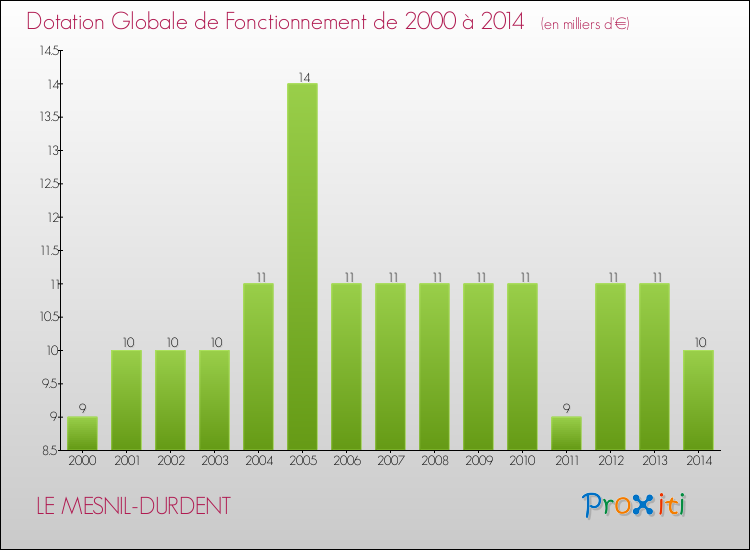 En effet, la dotation globale de fonctionnement versée par l'état en 2014 à la seule commune de Le Mesnil-Durdent était de : 10 000 € au total.