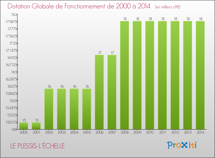 En effet, la dotation globale de fonctionnement versée par l'état en 2014 à la seule commune de Le Plessis-l'Échelle était de : 18 000 € au total.