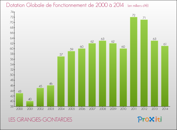 En effet, la dotation globale de fonctionnement versée par l'état en 2014 à la seule commune de Les Granges-Gontardes était de : 61 000 € au total.