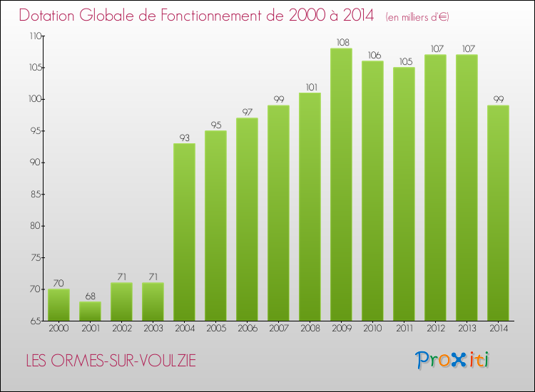 En effet, la dotation globale de fonctionnement versée par l'état en 2014 à la seule commune de Les Ormes-sur-Voulzie était de : 99 000 € au total.