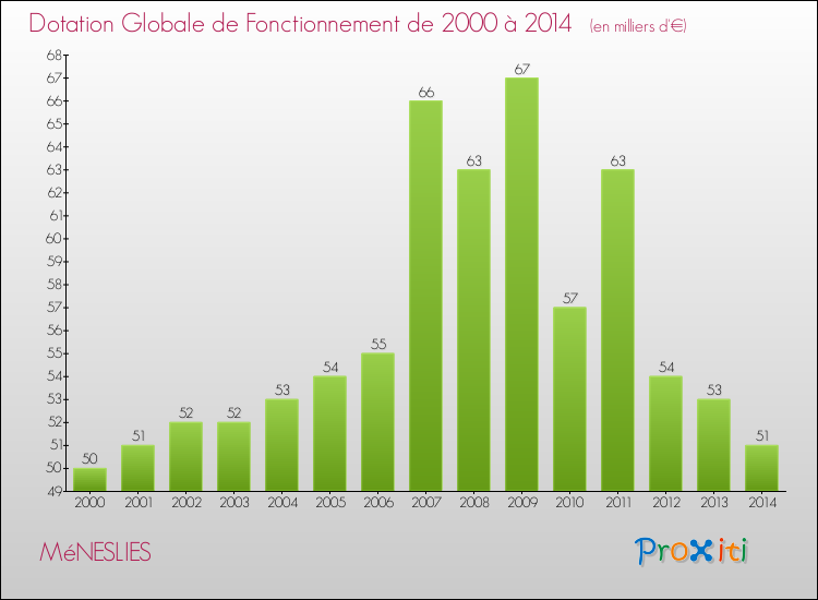 En effet, la dotation globale de fonctionnement versée par l'état en 2014 à la seule commune de Méneslies était de : 51 000 € au total.