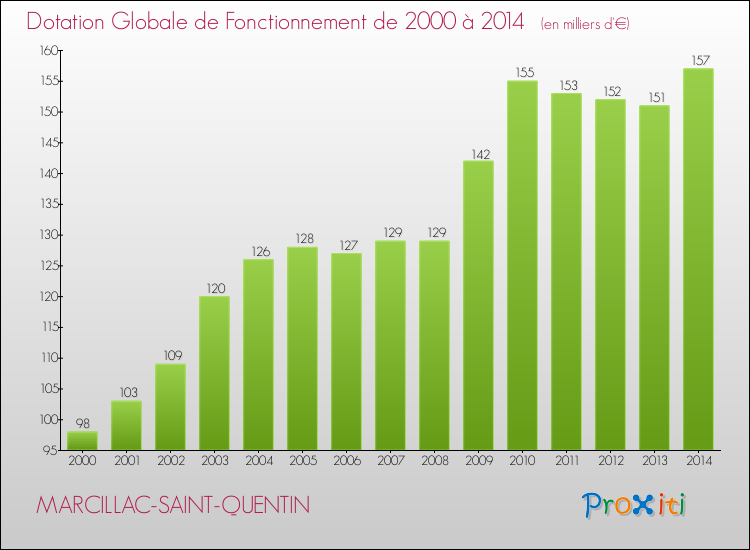 Evolution du montant de la Dotation Globale de Fonctionnement pour MARCILLAC-SAINT-QUENTIN de 2000 à 2014