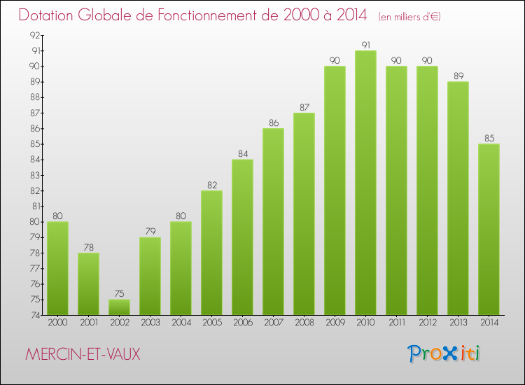 En effet, la dotation globale de fonctionnement versée par l'état en 2014 à la seule commune de Mercin-et-Vaux était de : 85 000 € au total.