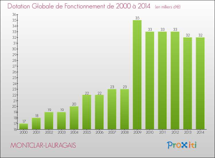 En effet, la dotation globale de fonctionnement versée par l'état en 2014 à la seule commune de Montclar-Lauragais était de : 32 000 € au total.