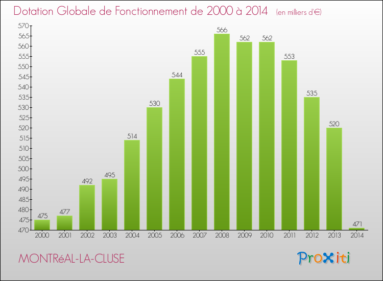 Evolution du montant de la Dotation Globale de Fonctionnement pour MONTRéAL-LA-CLUSE de 2000 à 2014