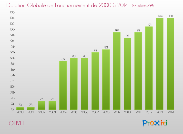 Rapporté aux 433 habitants de Olivet en 2014, cela représente 241 € par habitant (en augmentation de 0.42 % par rapport à 2013).