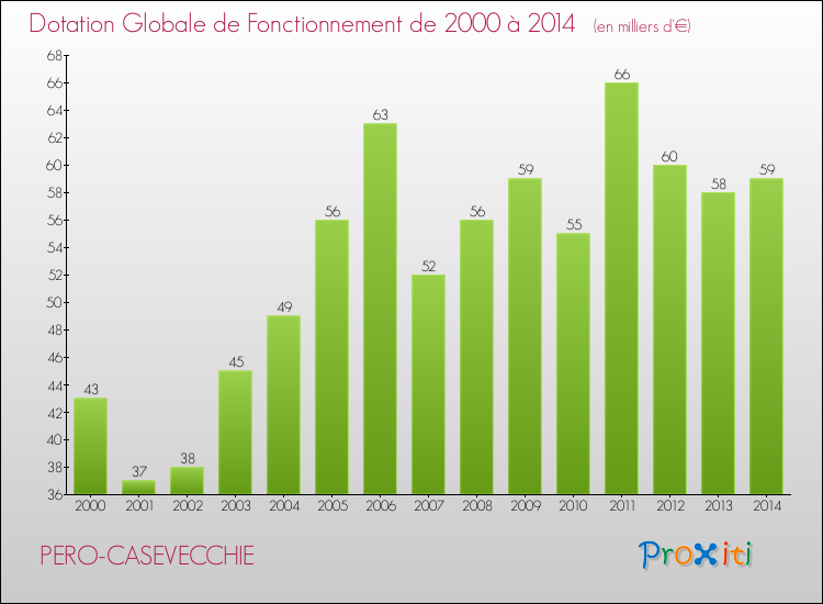 En effet, la dotation globale de fonctionnement versée par l'état en 2014 à la seule commune de Pero-Casevecchie était de : 59 000 € au total.