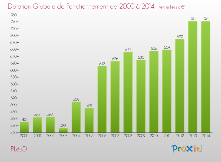 En effet, la dotation globale de fonctionnement versée par l'état en 2014 à la seule commune de Plélo était de : 741 000 € au total.