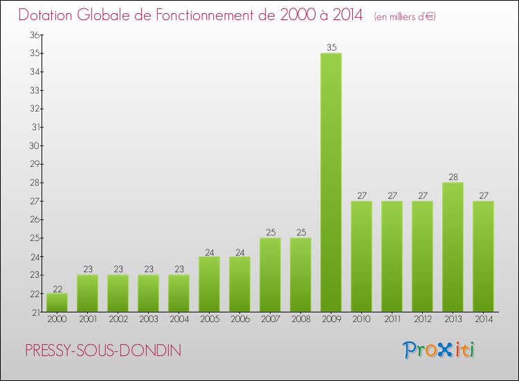 En effet, la dotation globale de fonctionnement versée par l'état en 2014 à la seule commune de Pressy-sous-Dondin était de : 27 000 € au total.