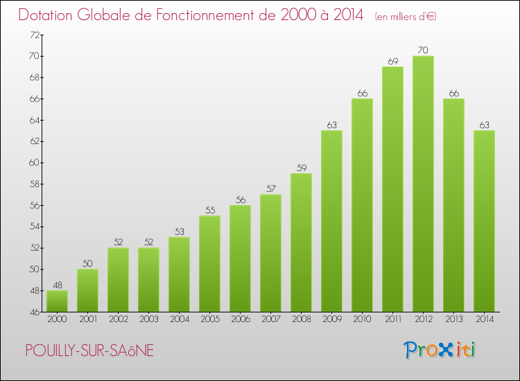 En effet, la dotation globale de fonctionnement versée par l'état en 2014 à la seule commune de Pouilly-sur-Saône était de : 63 000 € au total.
