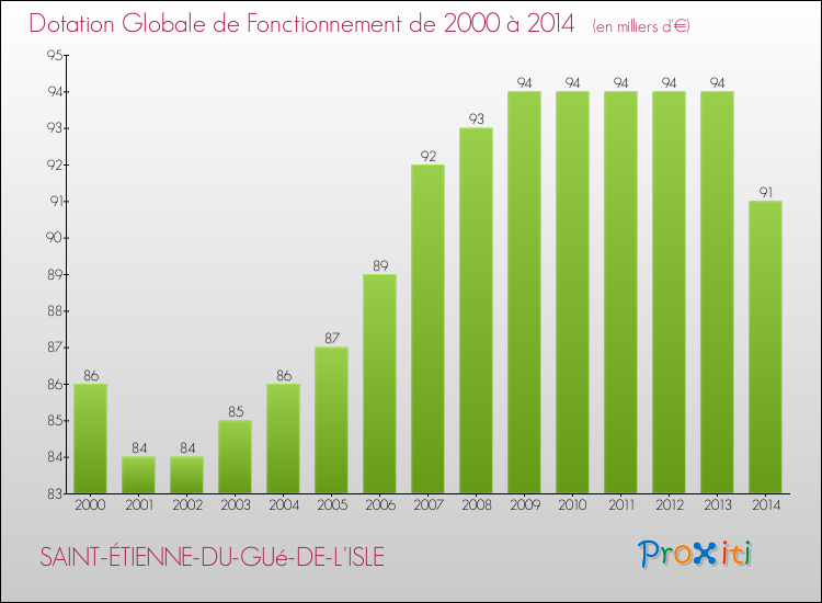 En effet, la dotation globale de fonctionnement versée par l'état en 2014 à la seule commune de Saint-Étienne-du-Gué-de-l'Isle était de : 91 000 € au total.