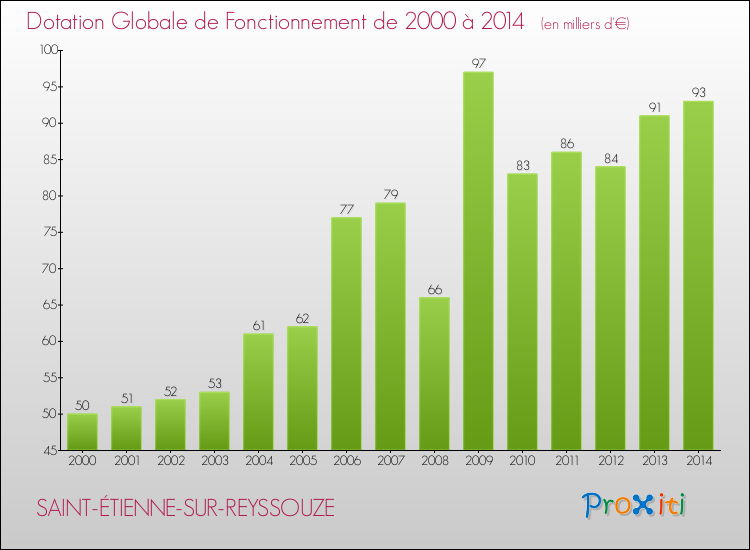 En effet, la dotation globale de fonctionnement versée par l'état en 2014 à la seule commune de Saint-Étienne-sur-Reyssouze était de : 93 000 € au total.