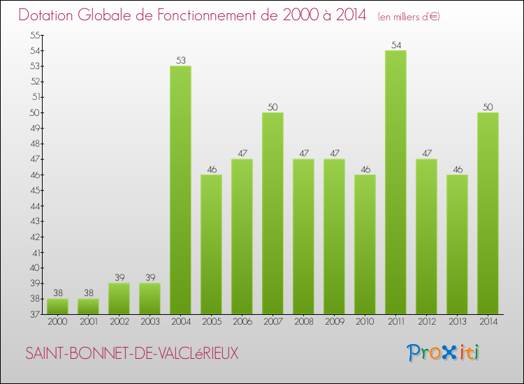 En effet, la dotation globale de fonctionnement versée par l'état en 2014 à la seule commune de Saint-Bonnet-de-Valclérieux était de : 50 000 € au total.