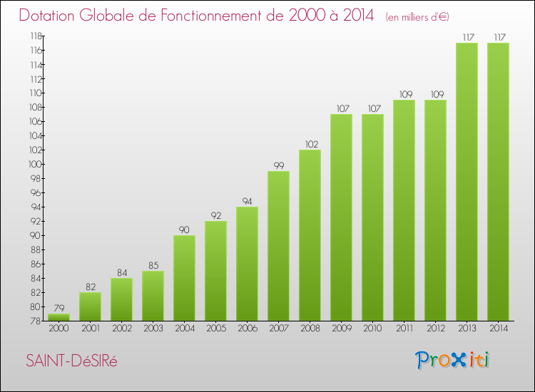 En effet, la dotation globale de fonctionnement versée par l'état en 2014 à la seule commune de Saint-Désiré était de : 117 000 € au total.