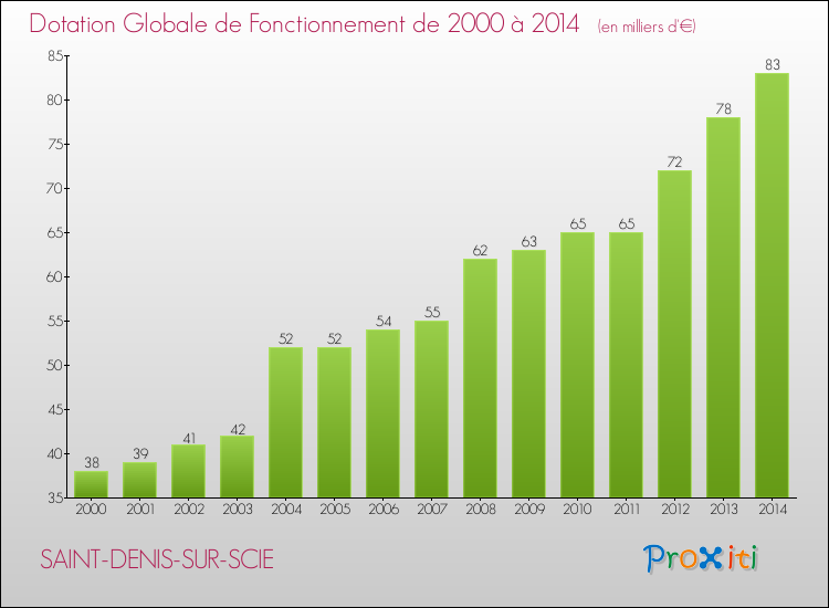 En effet, la dotation globale de fonctionnement versée par l'état en 2014 à la seule commune de Saint-Denis-sur-Scie était de : 83 000 € au total.