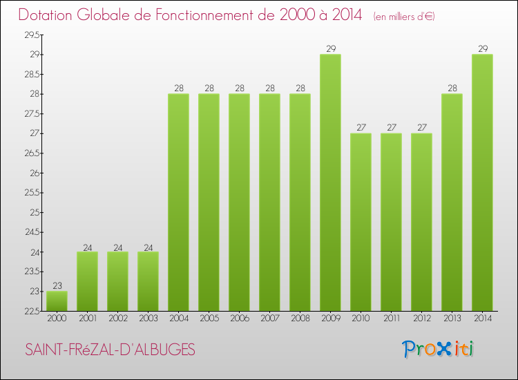 En effet, la dotation globale de fonctionnement versée par l'état en 2014 à la seule commune de Saint-Frézal-d'Albuges était de : 29 000 € au total.