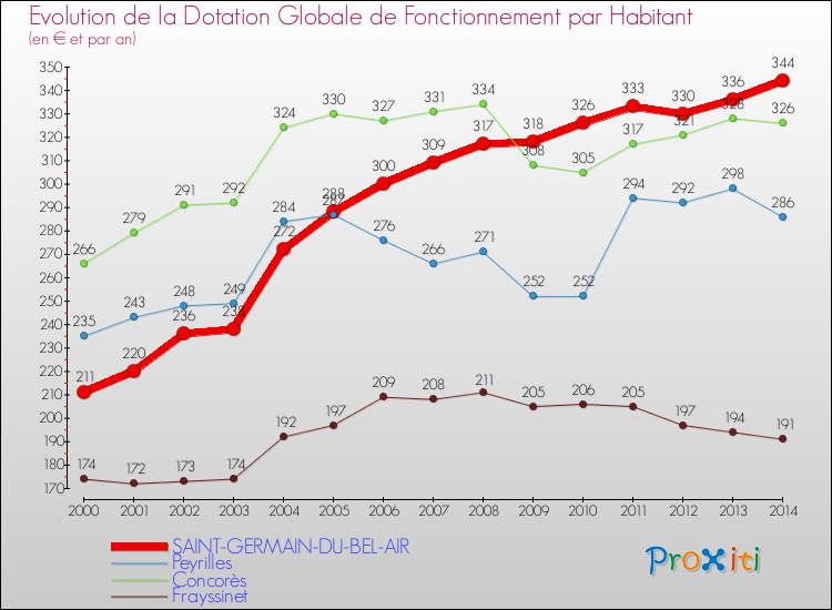 A Saint-Germain-du-Bel-Air, en 2014 un habitant reçoit donc plus de subventions au titre de la DGF que pour des communes similaires.