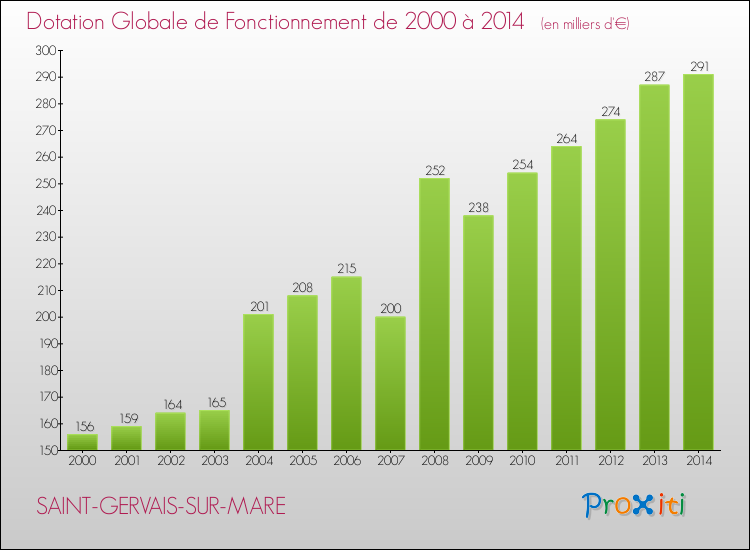 En effet, la dotation globale de fonctionnement versée par l'état en 2014 à la seule commune de Saint-Gervais-sur-Mare était de : 291 000 € au total.