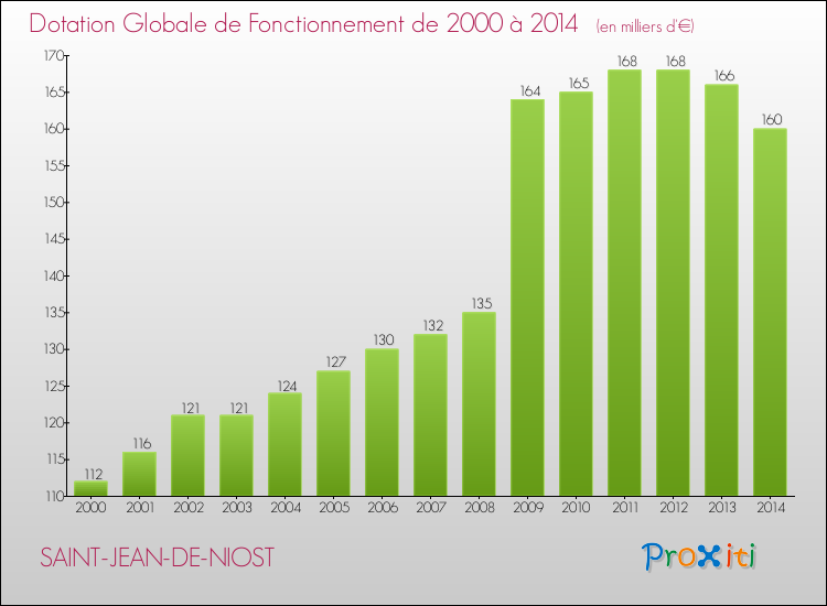 Dans le même temps, la Dotation Globale de Fonctionnement accordée aux communes françaises similaires à Saint-Jean-de-Niost était de 171 € par habitant, en 2014.