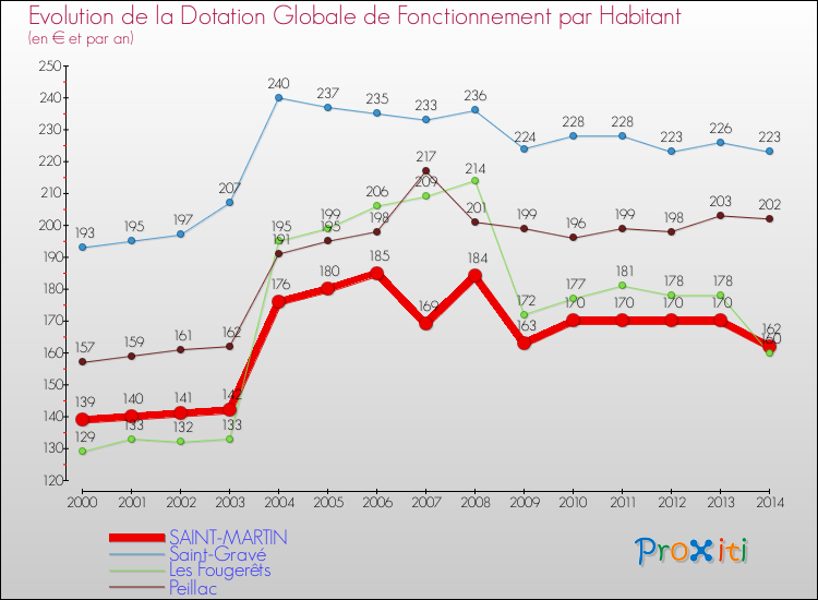 Rapporté aux 1 338 habitants de Saint-Martin en 2014, cela représente 162 € par habitant (en baisse de 4.71 % par rapport à 2013).