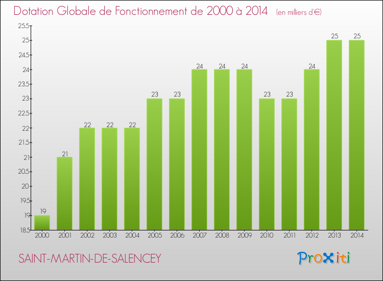 En effet, la dotation globale de fonctionnement versée par l'état en 2014 à la seule commune de Saint-Martin-de-Salencey était de : 25 000 € au total.