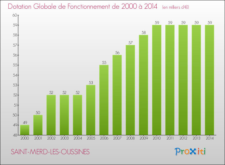 En effet, la dotation globale de fonctionnement versée par l'état en 2014 à la seule commune de Saint-Merd-les-Oussines était de : 59 000 € au total.
