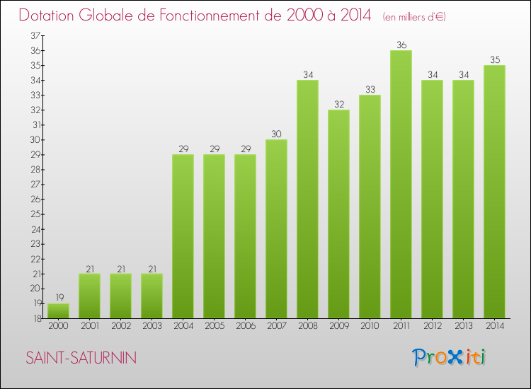 En effet, la dotation globale de fonctionnement versée par l'état en 2014 à la seule commune de Saint-Saturnin était de : 35 000 € au total.