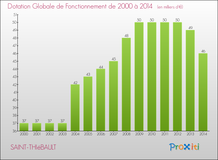 En effet, la dotation globale de fonctionnement versée par l'état en 2014 à la seule commune de Saint-Thiébault était de : 46 000 € au total.