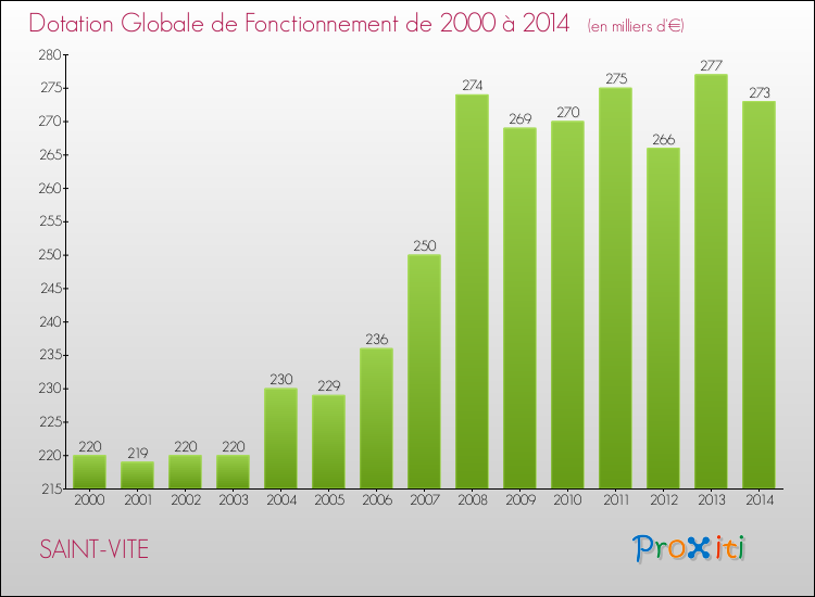 En effet, la dotation globale de fonctionnement versée par l'état en 2014 à la seule commune de Saint-Vite était de : 273 000 € au total.
