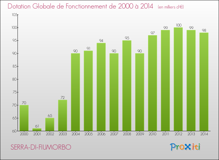 En effet, la dotation globale de fonctionnement versée par l'état en 2014 à la seule commune de Serra-di-Fiumorbo était de : 98 000 € au total.