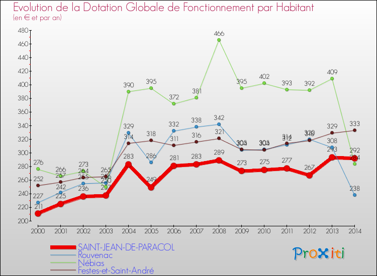 A Saint-Jean-de-Paracol, en 2014 un habitant reçoit donc plus de subventions au titre de la DGF que pour des communes similaires.