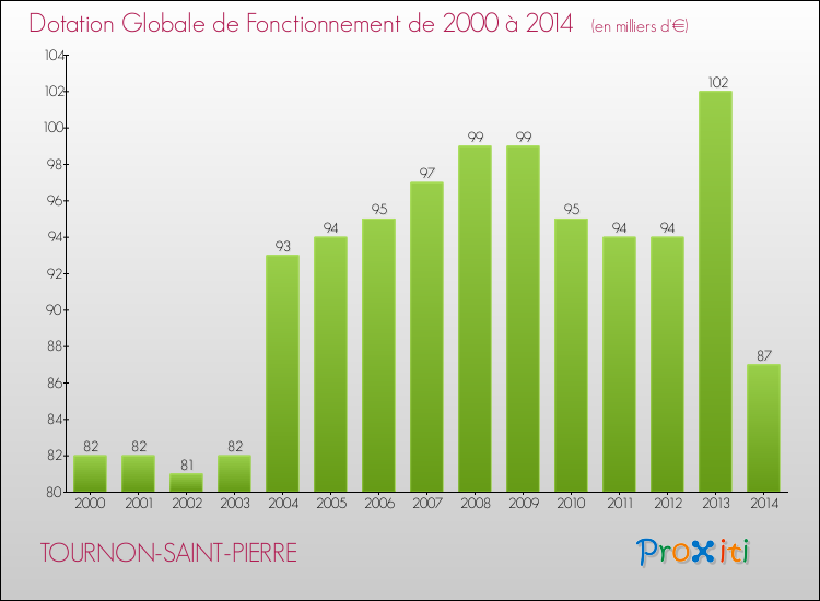 En effet, la dotation globale de fonctionnement versée par l'état en 2014 à la seule commune de Tournon-Saint-Pierre était de : 87 000 € au total.