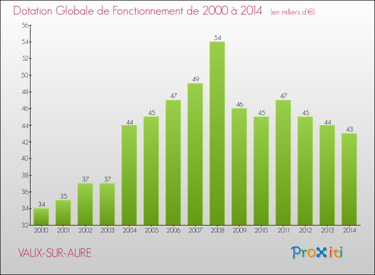 En effet, la dotation globale de fonctionnement versée par l'état en 2014 à la seule commune de Vaux-sur-Aure était de : 43 000 € au total.