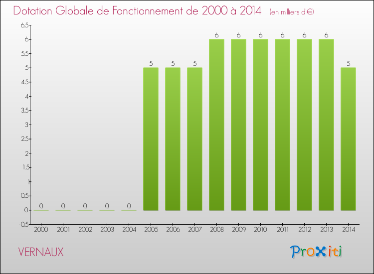 En effet, la dotation globale de fonctionnement versée par l'état en 2014 à la seule commune de Vernaux était de : 5 000 € au total.