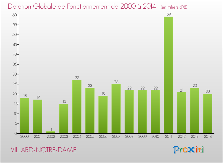 En effet, la dotation globale de fonctionnement versée par l'état en 2014 à la seule commune de Villard-Notre-Dame était de : 20 000 € au total.