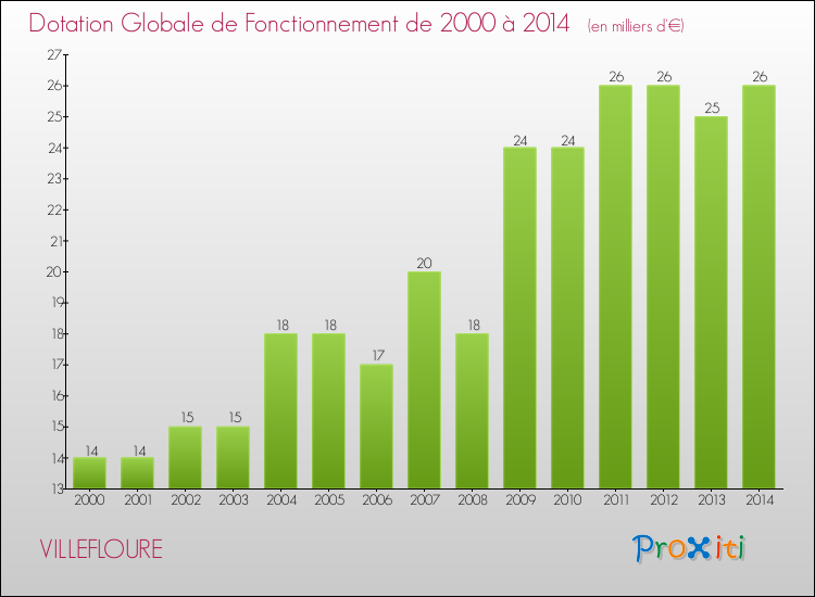 En effet, la dotation globale de fonctionnement versée par l'état en 2014 à la seule commune de Villefloure était de : 26 000 € au total.