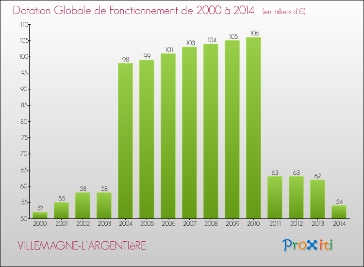 En effet, la dotation globale de fonctionnement versée par l'état en 2014 à la seule commune de Villemagne-l'Argentière était de : 54 000 € au total.