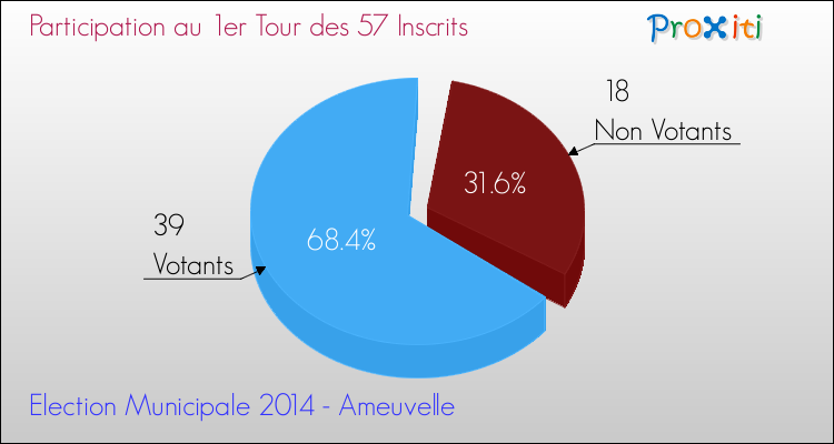 Le taux d'abstention à Ameuvelle y a donc été plus faible que la moyenne en France (36.45% au niveau national).